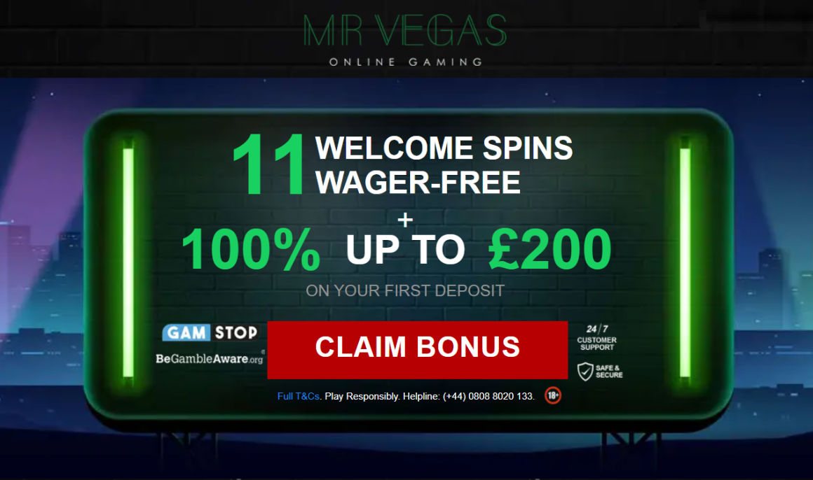 Mr Vegas Casino Bonus 2026 – 100% Match up to £200 + 11 Free Spins